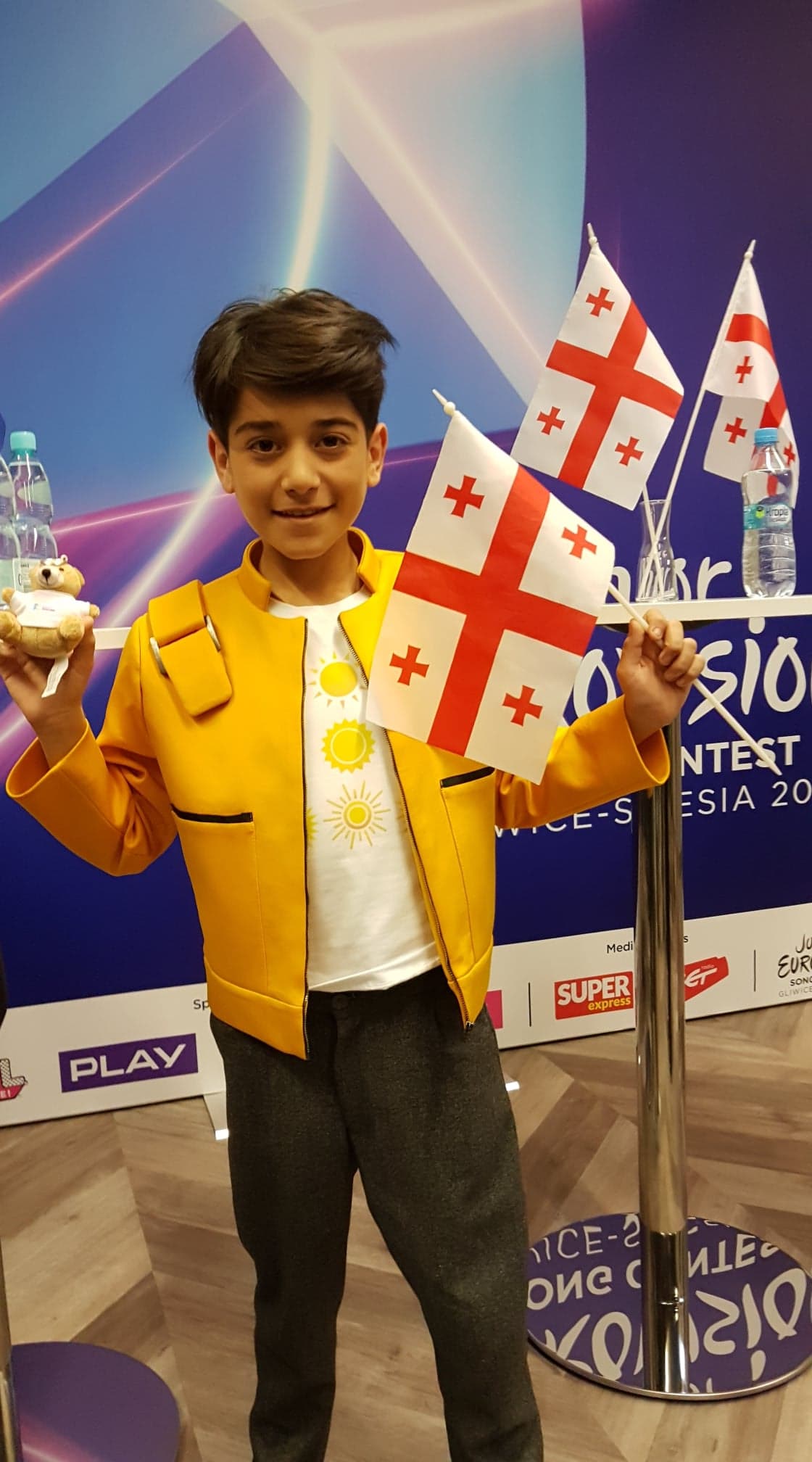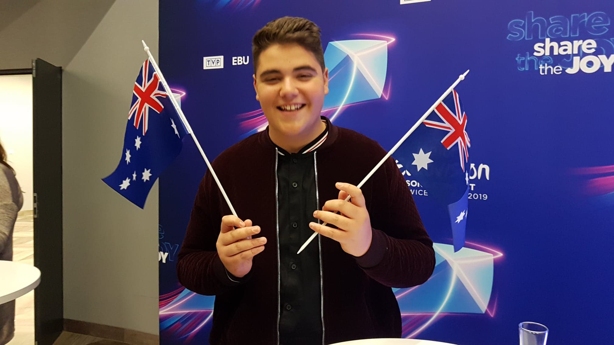 Uncategorized 2019 JESC: Australia and Georgia 23 November 2019 Ian Fowell 1 Comment After the press conference the artists of the 2019 Junior Eurovision Song Contest. Here are photos of Jordan Anthony (Australia) and Giorgi Rostishvili (Georgia). Photos@esccovers.com