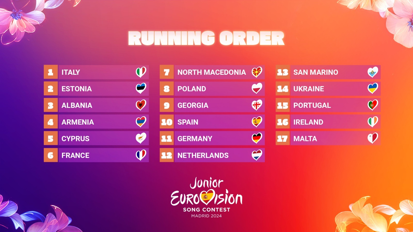 The running order for the 2024 Junior Eurovision Song Contest to be held on 16 November in Madrid has been made.
