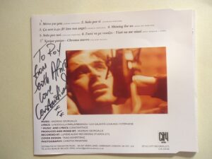 3rd in line is CONSTANTINOS who represented CYPRUS at the Eurovision song contest with MONO GIA MAS. The song was sung in Greek. I was very impressed with a young Constantinos and we chatted for some time. Like with JASMINE , I also wrote Afrikaans lyrics for the song but failed to find a local singer to record it. At that stage I had just started actively with covers and had not known many local singers to pitch songs to. Just like with the promo CD singles of Belgium and Finland, this also contained the song in many languages – 5 in total : Greek, English, Spanish, French and Italian. This to me is the ideal item I want from a Eurovision artist. 1996 was a great year in this regard.