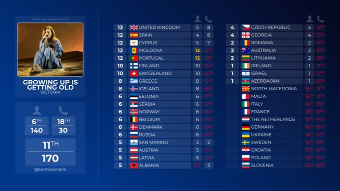 ESC Covers found another wonderful lay out of the points one of the 2021 Eurovision entries got – this time from BULGARIA. The song is Growing up is getting old and was performed by VICTORIA.