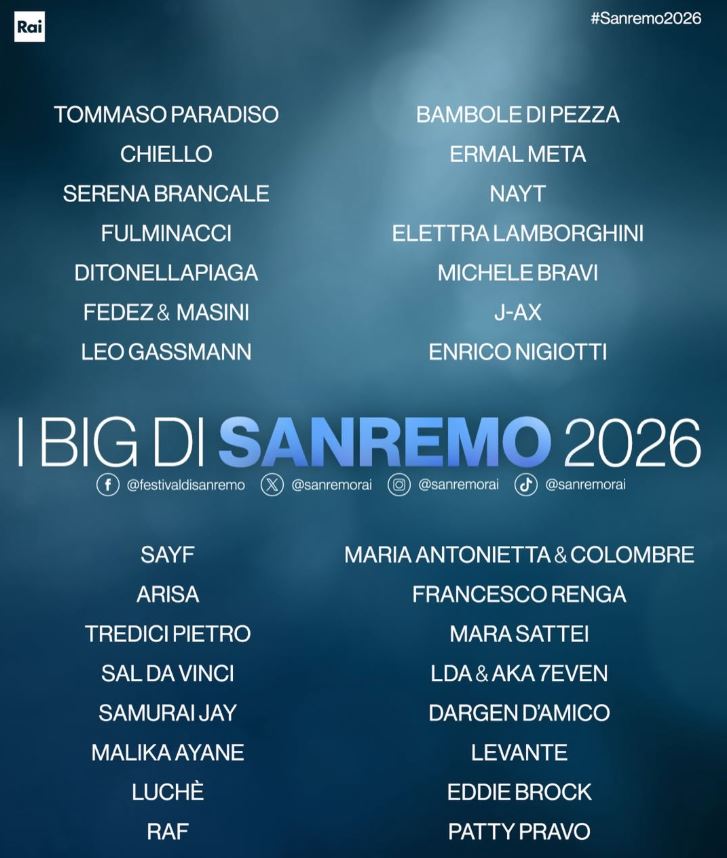 The acts taking part in the Sanremo 2026 festival in Italy have been revealed.