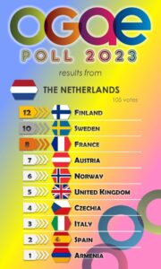 OGAE NETHERLANDS released their votes. Over 100 members voted.