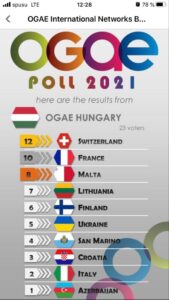 The forth result that came to us is that of an OGAE CLUB, in the form of OGAE Hungary. 23 of their members voted in the poll.
