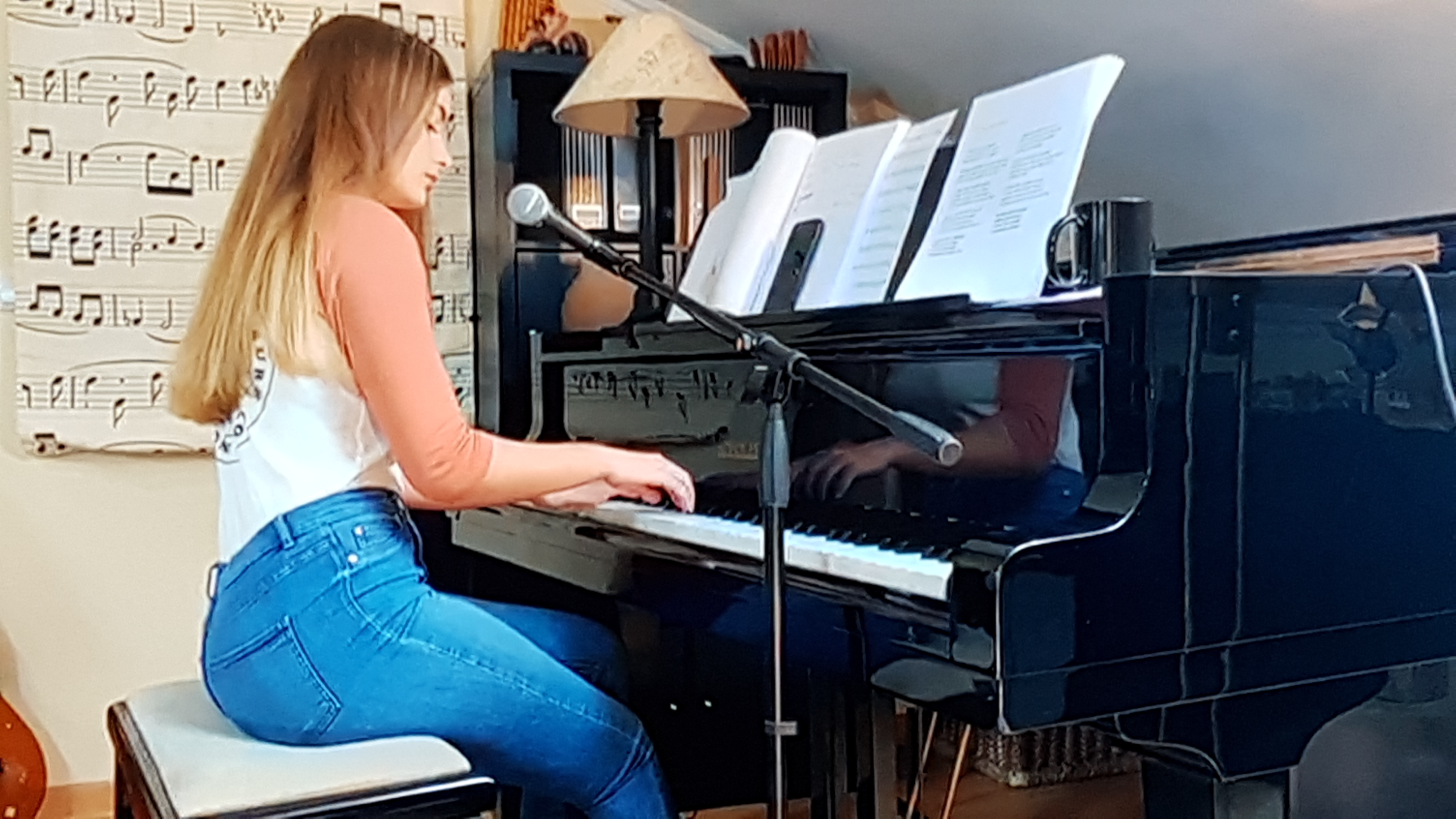 She showcased her talent at the piano with several songs by artists like Sam Smith and Billie Eilish and she played some of her own original compositions.