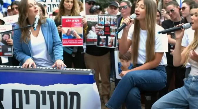 Source: ESC Covers – Photo from video clip of ‘לחזור הביתה”. מתוך הצעדה למען השבת החטופים’