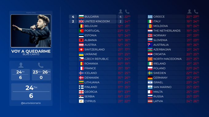 ESC Covers found another wonderful lay out of the points one of the 2021 Eurovision entries got – this time from SPAIN. The song is Voy a quedarme and was performed by BLAS CANTO.