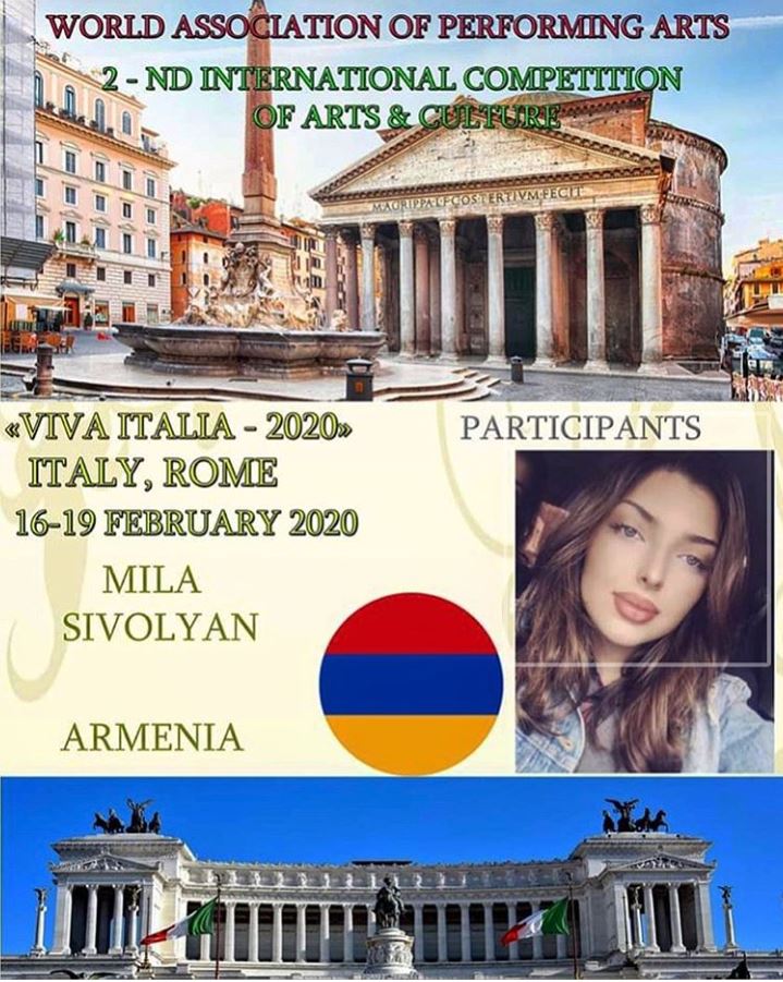Mila won an opera diploma award at the “Viva Italia” World Association of Performing Arts festival in Rome.